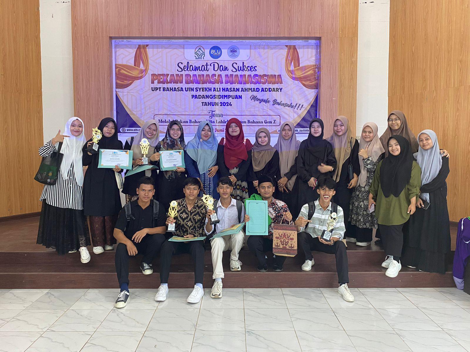 Dalam sebuah perhelatan yang penuh semangat dan keanekaragaman bahasa, Pekan Bahasa Mahasiswa sukses diselenggarakan oleh UPT. Bahasa UIN Syekh Ali Hasan Ahmad Addary Padangsidimpuan mulai tanggal 24 Juni sampai dengan 27 Juni 2024 dengan tema “Membangkitkan Agen Bahasa Generasi Z”. Acara ini menarik partisipasi aktif dari mahasiswa-mahasiswa dari berbagai jurusan di kampus ini.