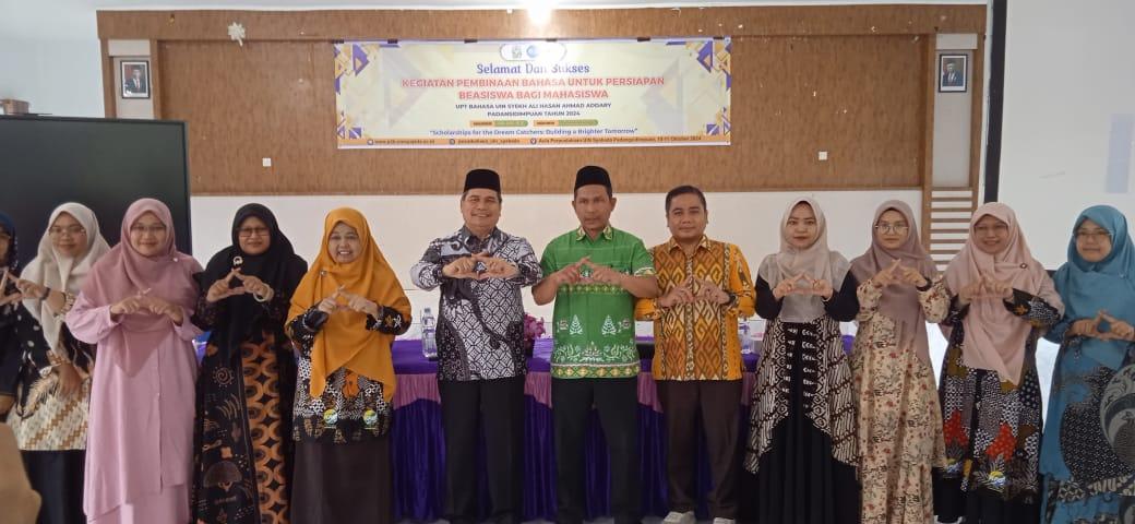 Pembukaan acara dilakukan oleh Rektor UIN Syekh Ali Hasan Ahmad Addary, Dr. H. Muhammad Darwis Dasopang, M.Ag., yang dalam sambutannya menyampaikan pentingnya penguasaan bahasa dan kemampuan menulis bagi mahasiswa. “Persiapan yang matang dalam melamar beasiswa mencerminkan dedikasi mahasiswa terhadap pendidikan dan pengembangan diri. Program ini adalah langkah awal untuk mewujudkan cita-cita akademik mahasiswa,” ungkapnya.