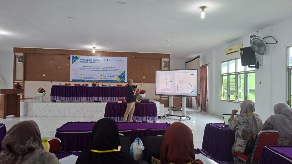 Dengan mengusung tema “Transformative English Language Pedagogy: Harnessing Gamification and Artificial Intelligence to Foster High-Engagement Learning Environments”, kegiatan ini menjadi langkah strategis dalam meningkatkan kompetensi dosen dalam menghadapi dinamika pendidikan global yang semakin berbasis teknologi. Melalui kegiatan ini, para dosen tidak hanya dibekali dengan wawasan dan keterampilan baru, tetapi juga diarahkan untuk menerapkan model pembelajaran yang adaptif, kreatif, dan berpusat pada peserta didik.